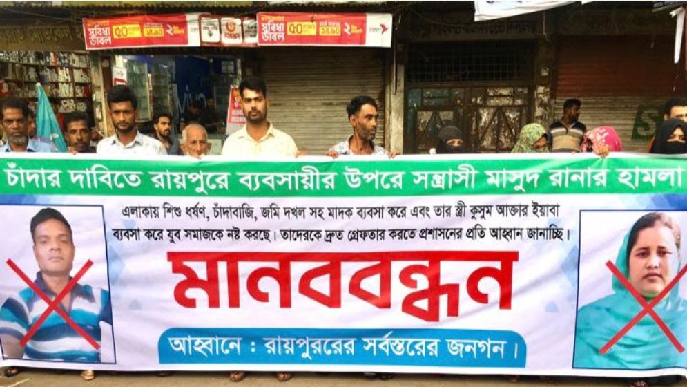 লক্ষ্মীপুরের রায়পুরে পৌরসভার ৭ নাম্বার ওয়ার্ড দক্ষিণ কেরোয়া গ্রামের বিএনপির নেতা মাসুদ রানা দম্পত্তির অত্যাচারে অতিষ্ঠ গ্রামবাসী। বিএনপির নাম ভাঙিয়ে মাসুদসহ তার স্ত্রী ও ছেলের একের পর এক বেপরোয়া চাঁদাবাজি, হয়রানি, ভয়ভীতি দেখানো ও মারধরের ঘটনা ঘটিয়েছে বলে ভুক্তভোগীরা অভিযোগ করেন।