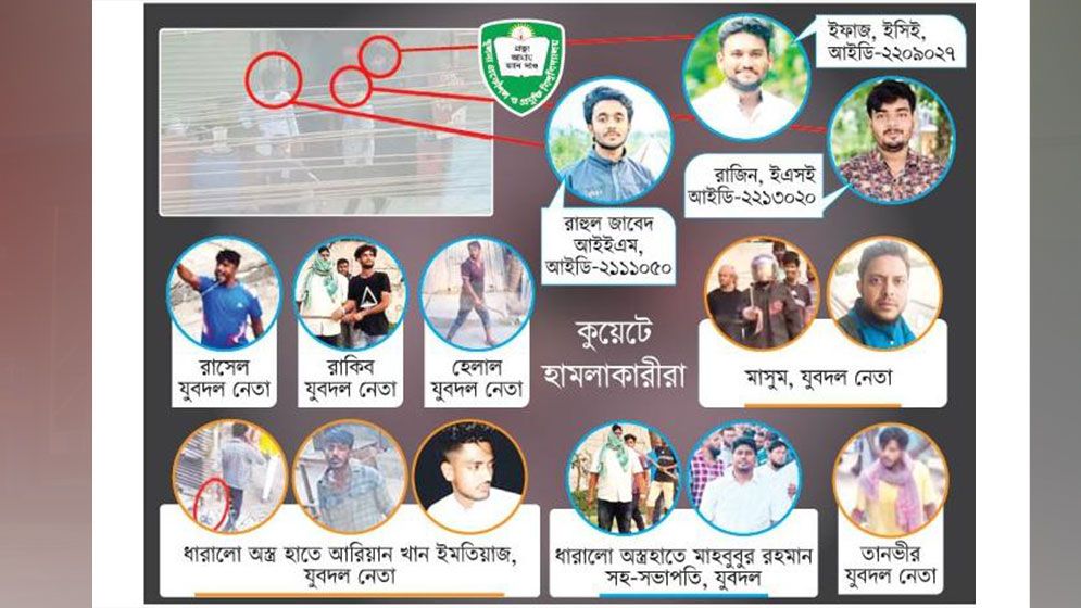 খুলনা প্রকৌশল ও প্রযুক্তি বিশ্ববিদ্যালয়ে (কুয়েট) ছাত্র রাজনীতি বন্ধের দাবিকে কেন্দ্র করে ছাত্রদল ও সাধারণ শিক্ষার্থীদের মধ্যকার সংঘর্ষের ঘটনায় জড়িতদের শনাক্ত করা গেছে। ১৮ ফেব্রুয়ারির এই সংঘর্ষের সময় সাধারণ শিক্ষার্থীদের ওপর বহিরাগত সন্ত্রাসীরা গুলি চালিয়েছিল। খানজাহান আলী হলের বিপরীত পাশের একটি গলির ভেতর থেকে কালো হেলমেট ও কালো প্যান্ট পরা এক যুবককে অস্ত্র দিয়ে কুয়েটের দিকে গুলি করতে দেখা গেছে। এছাড়া হামলায় জড়িত ছিল বলে কুয়েটের আশপাশের এলাকার একাধিক যুবদল ও ছাত্রদলের নেতাকর্মীকে চিহ্নিত করা গেছে।