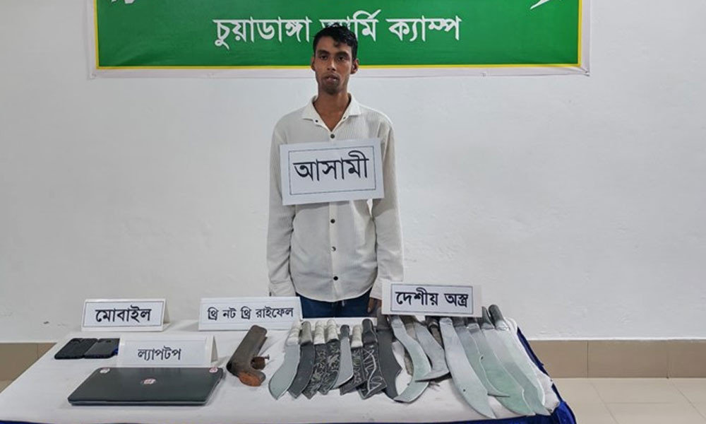 চুয়াডাঙ্গায় আগ্নেয়াস্ত্র ও দেশীয় অস্ত্রসহ ছাত্রদল নেতা নাজমুল আরেফিন কিরণকে (৩৪) আটক করেছে সেনাবাহিনী। বৃহস্পতিবার (১৯ জুন) ভোরে অভিযান চালিয়ে নিজ বাড়ি থেকে তাকে আটক করা হয়।