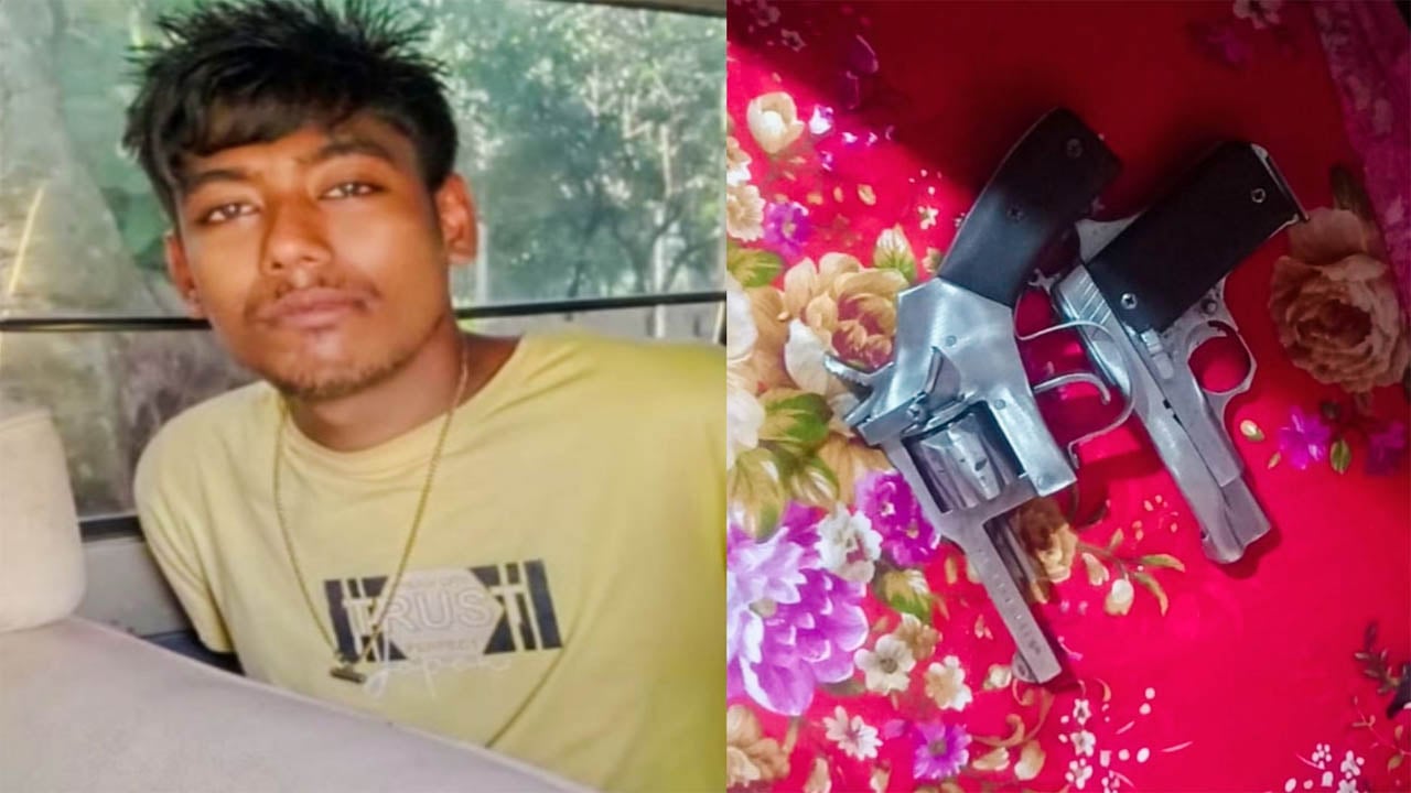 এ সময় তার কাছ থেকে দুটি বিদেশি পিস্তল জব্দ করা হয়, যার একটির গায়ে ‘মেড ইন ইউএসএ’ এবং অপরটিতে ‘মেড ইন পাকিস্তান’ লেখা রয়েছে। এছাড়া তার কাছ থেকে ১৭ পিস ইয়াবা ট্যাবলেটও জব্দ করা হয়।