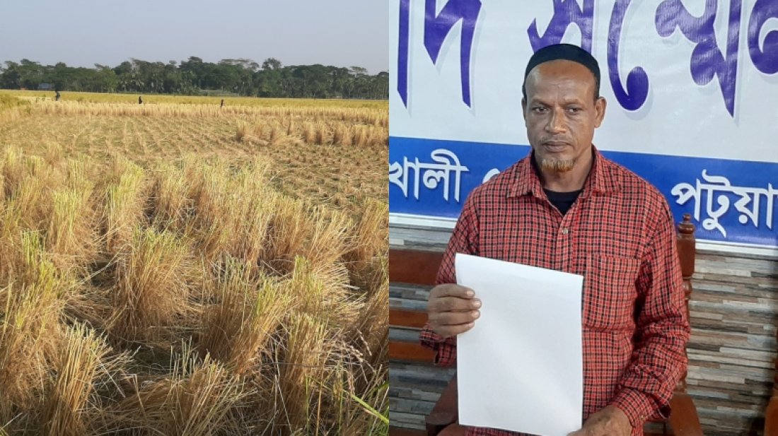বিএনপি নেতা নাসির হোসেন পিন্টু দুই বছরের জন্য ওই জমি লিজ নিয়ে কৃষকের ধান কেটে নিয়ে গেছেন বলে অভিযোগ করেছেন কৃষক সেকান্দার আলী।