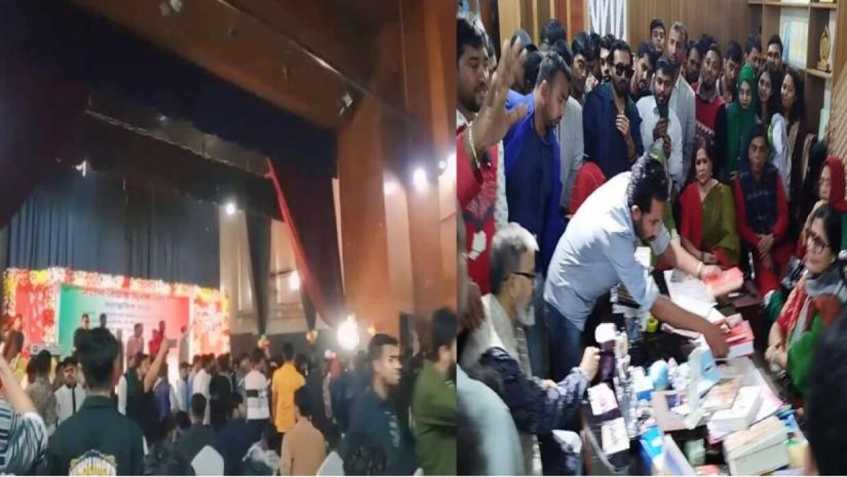 প্রত্যক্ষদর্শীরা জানান, সাংস্কৃতিক পর্ব শেষ হওয়ার পর খাবার বিতরণ পর্ব শুরু হওয়ার আগেই ছাত্রদলের নেতাকর্মীরা মিলনায়তনের সামনের গেটে এসে রাজনৈতিক স্লোগান দিতে থাকেন। এরপর তারা দলবেঁধে মিলনায়তনের ভেতরে ঢুকে স্লোগান দেন। ফলে খাবার বিতরণ পর্ব সফলভাবে শেষ করা সম্ভব হয়নি। তাদের হট্টগোলের কারণে অনেক শিক্ষক মিলনায়তন ত্যাগ করেন। এরপর ভিড় ঠেলে শিক্ষার্থীরাও মিলনায়তন ছেড়ে চলে যান।