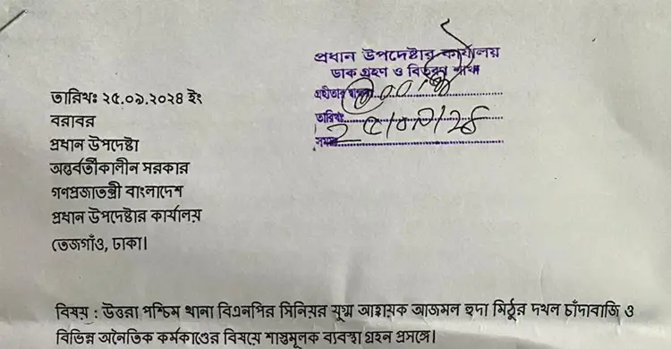 দখল-চাঁদাবাজিসহ বিএনপি নেতার বিরুদ্ধে প্রধান উপদেষ্টাকে ৭ অভিযোগ