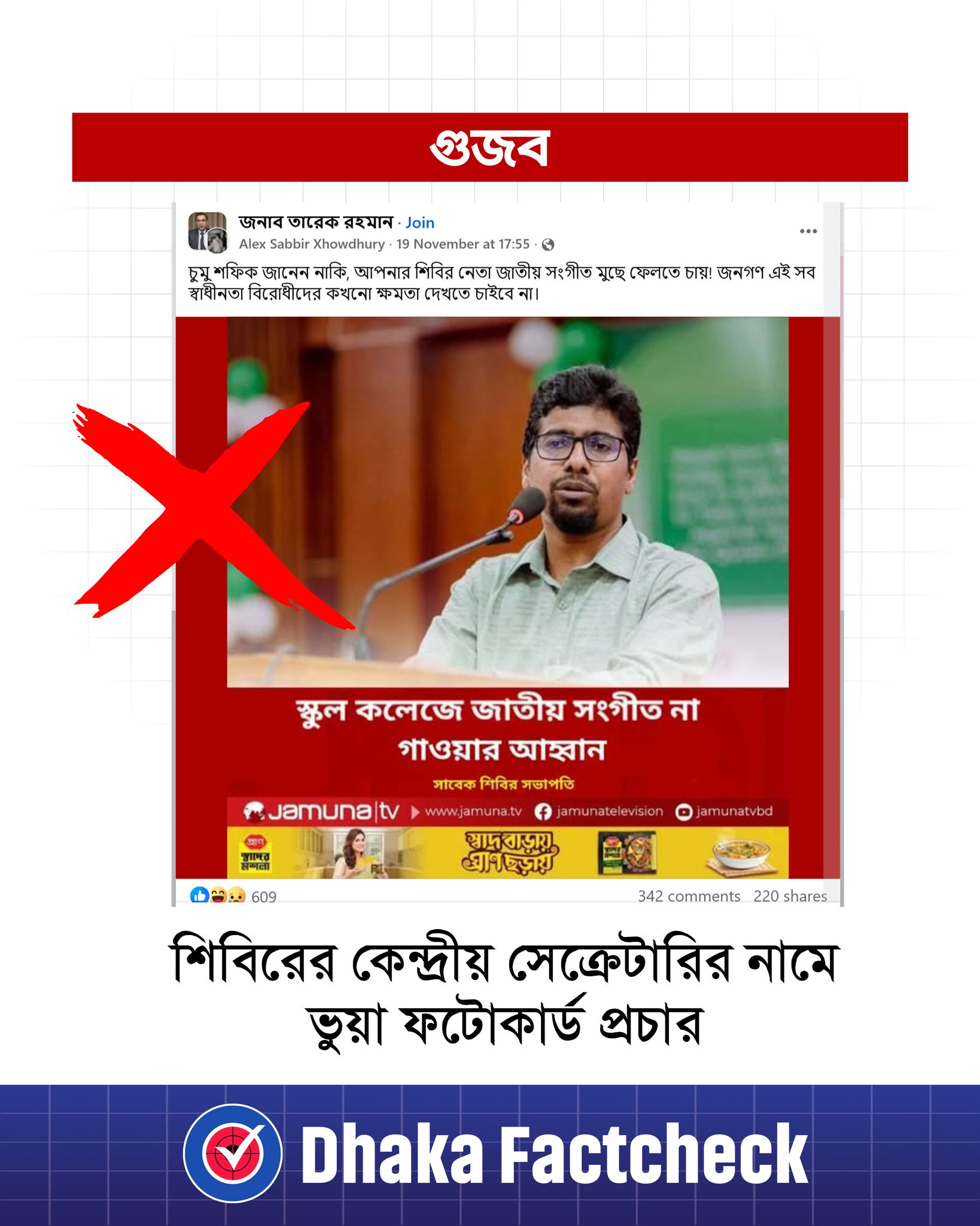সুতরাং, শিবিরের কেন্দ্রীয় সেক্রেটারির নামে প্রচারিত ফটোকার্ডটি ভুয়া।