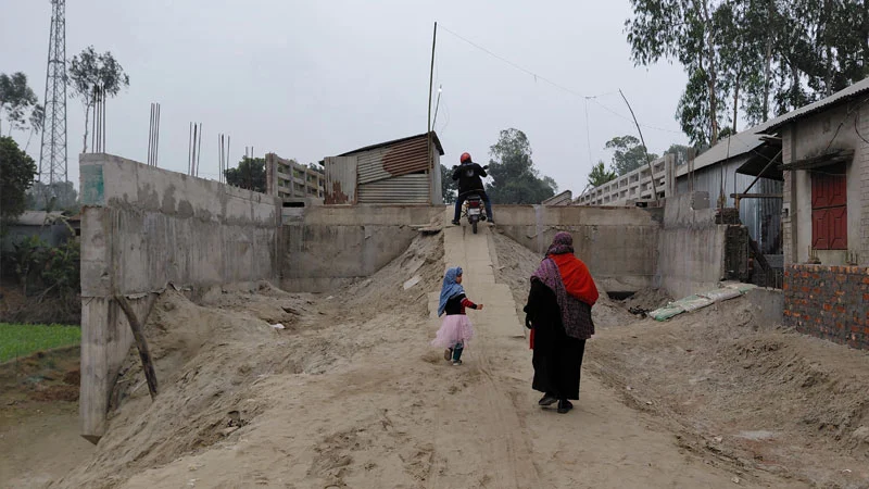 সরেজমিনে দেখা যায়, সংযোগ সড়ক না থাকায় স্থানীয় স্কুল-কলেজের শিক্ষার্থীরা মই বা কাঠের সিঁড়ি বেয়ে ঝুঁকি নিয়ে ব্রিজের ওপর উঠছে।