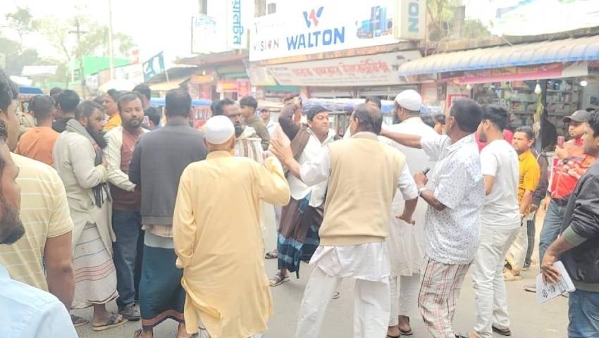 সংশ্লিষ্ট একাধিক সূত্রে জানা যায়, বুধবার দুপুরে কর্মী ও সমর্থকদের নিয়ে কালীরবাজার এলাকায় গণসংযোগে যান কলস প্রতীকের প্রার্থী মিল্টন বৈদ্য। গণসংযোগ চলাকালে ধানের শীষের প্রার্থী জাহান্দার আলী মিয়ার সমর্থকরা ও মিল্টন বৈদ্যের সমর্থকরা মুখোমুখি অবস্থান নেয়। পরে উভয় পক্ষ নিজ নিজ প্রতীকের স্লোগান দিলে উত্তেজনা ছড়িয়ে পড়ে। একপর্যায়ে ধাক্কাধাক্কির ঘটনা ঘটে। পরে উভয় পক্ষের মধ্যে সংঘর্ষ বাধে। এই ঘটনায় ১০ জন আহত হয়।