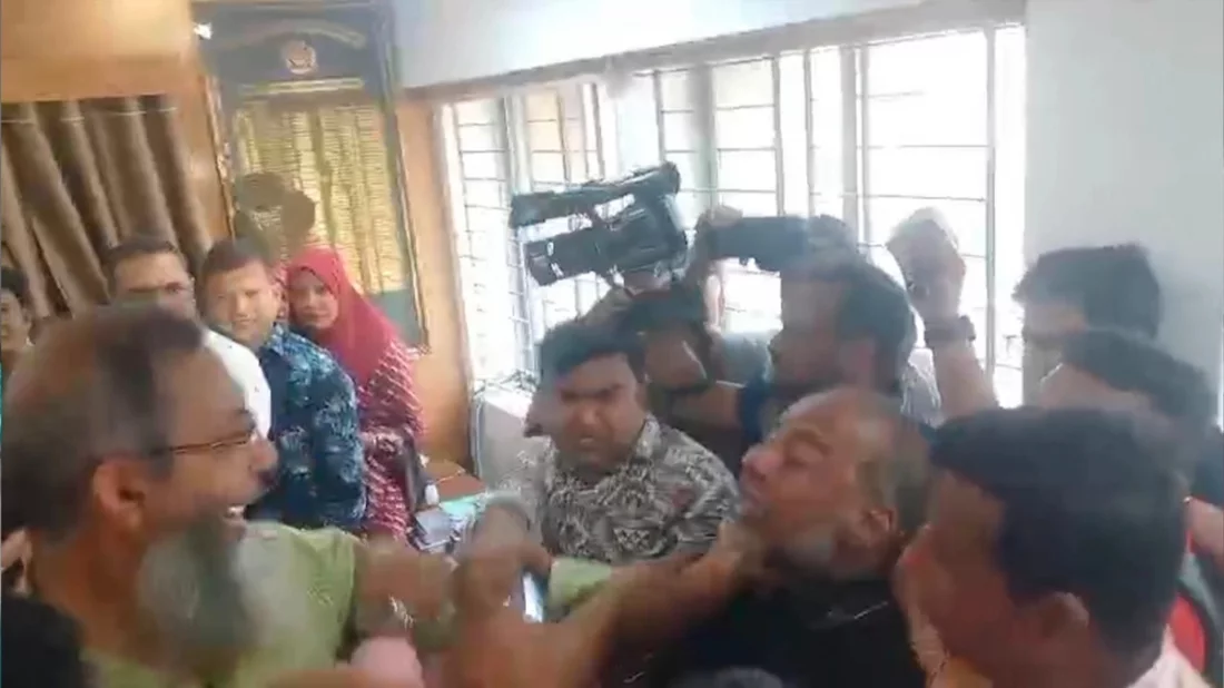 জেলা নির্বাচন কর্মকর্তার কার্যালয়ে দুই নেতার মধ্যে হাতাহাতির ঘটনা ঘটে।